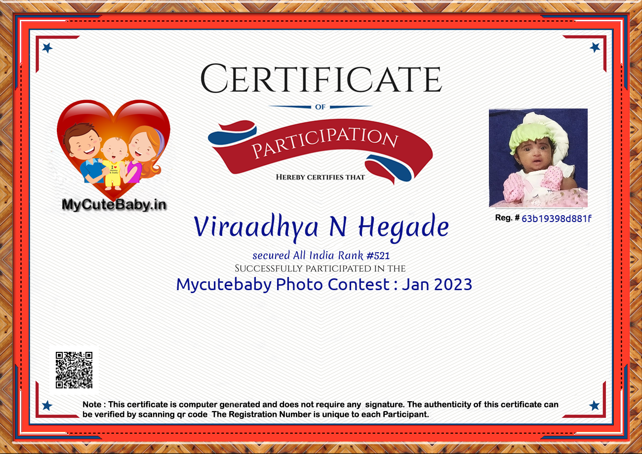 Participation certificate for all the participants whose mycutebaby votes are more than 1000.
