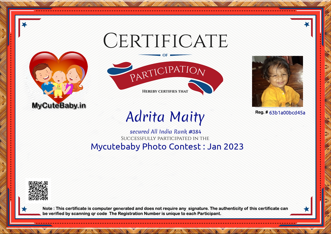 Participation certificate for all the participants whose mycutebaby votes are more than 1000.