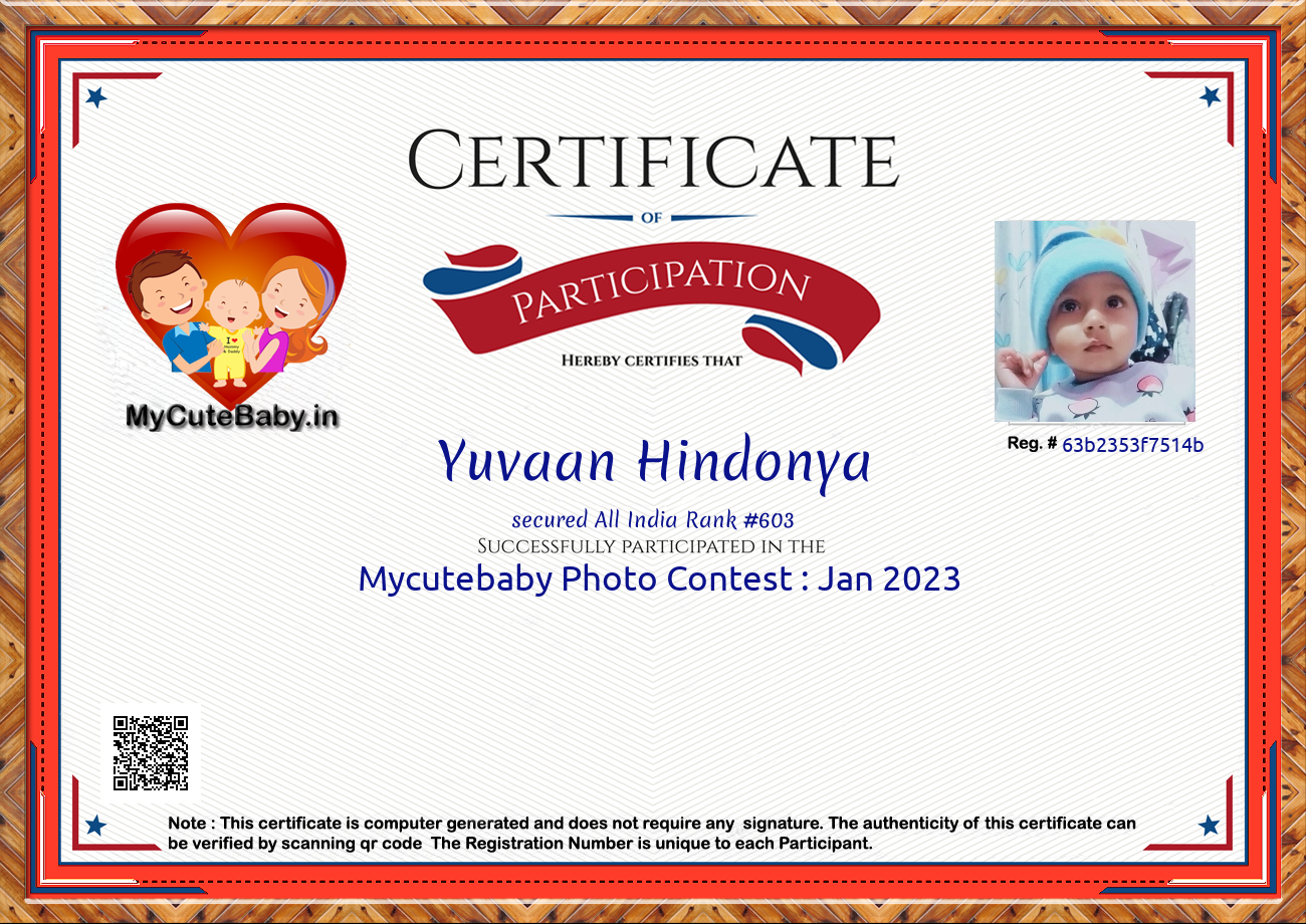 Participation certificate for all the participants whose mycutebaby votes are more than 1000.