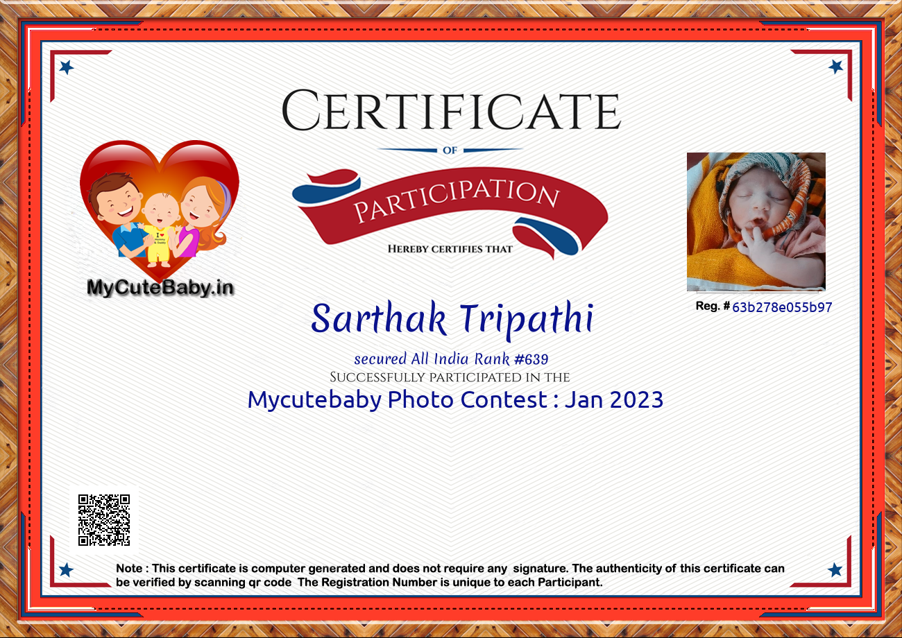 Participation certificate for all the participants whose mycutebaby votes are more than 1000.