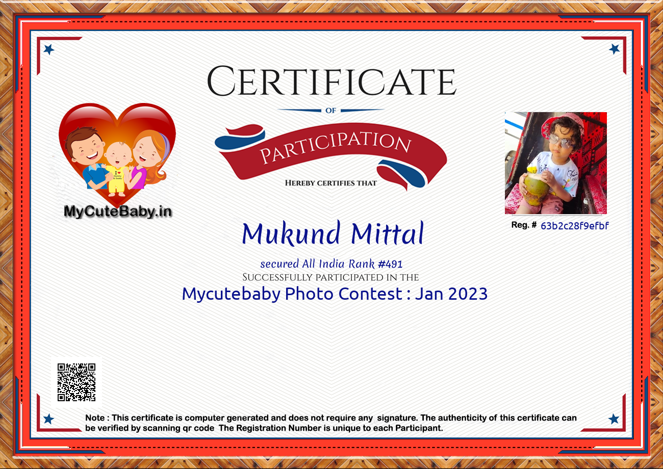 Participation certificate for all the participants whose mycutebaby votes are more than 1000.