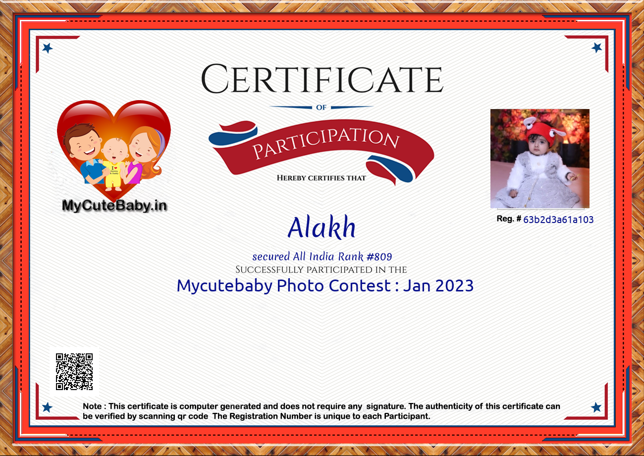 Participation certificate for all the participants whose mycutebaby votes are more than 1000.
