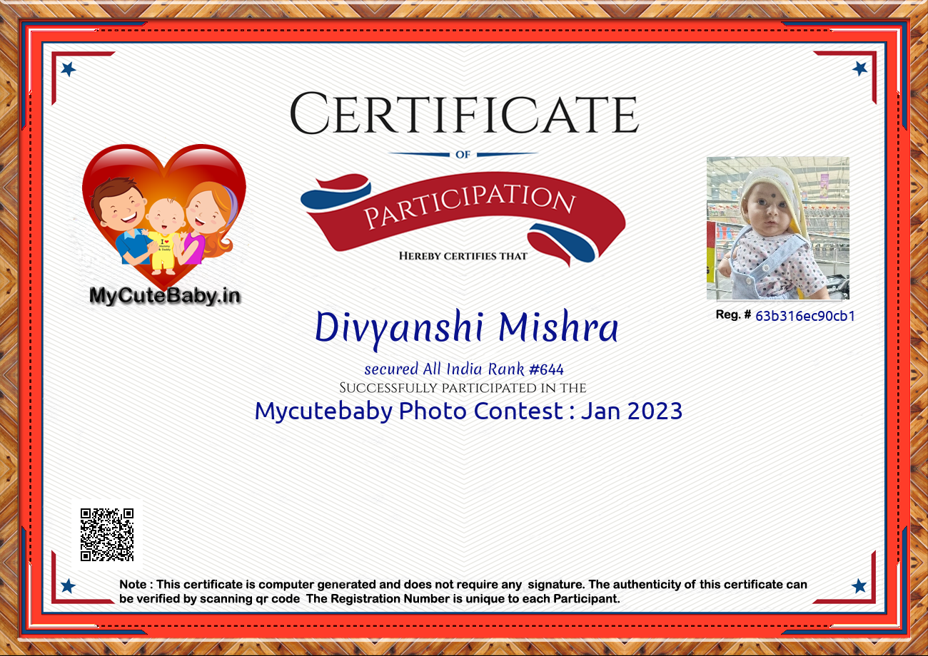 Participation certificate for all the participants whose mycutebaby votes are more than 1000.