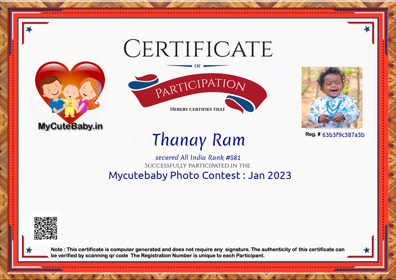 Participation certificate for all the participants whose mycutebaby votes are more than 1000.