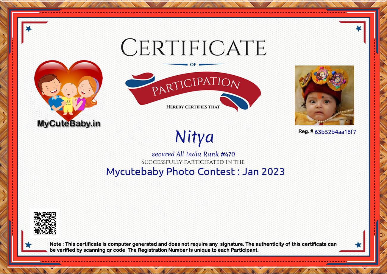 Participation certificate for all the participants whose mycutebaby votes are more than 1000.