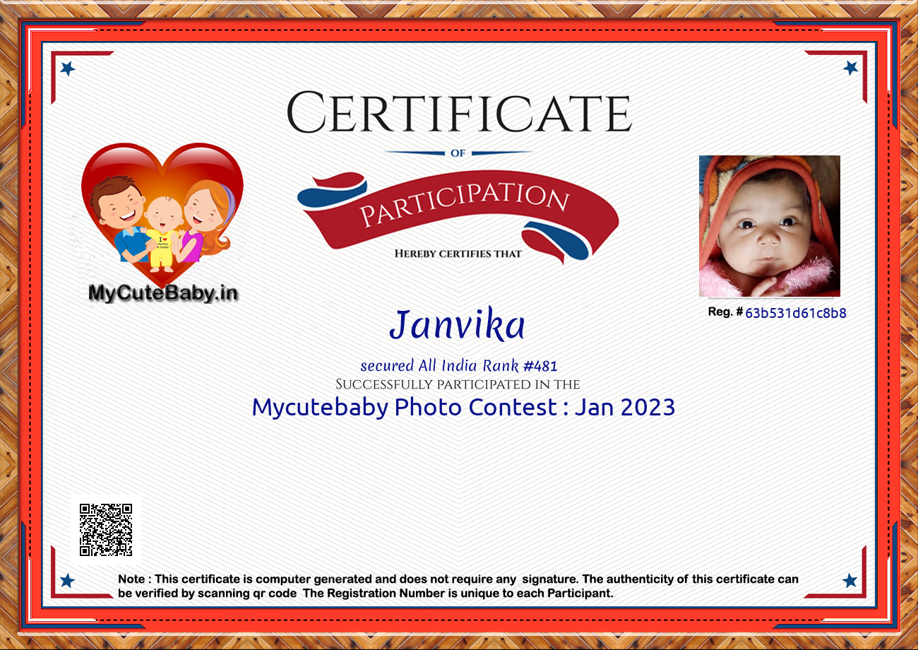 Participation certificate for all the participants whose mycutebaby votes are more than 1000.