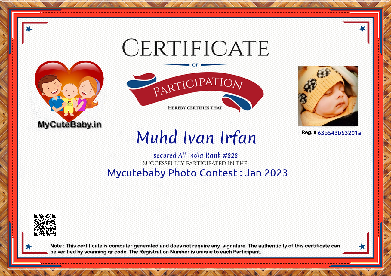 Participation certificate for all the participants whose mycutebaby votes are more than 1000.