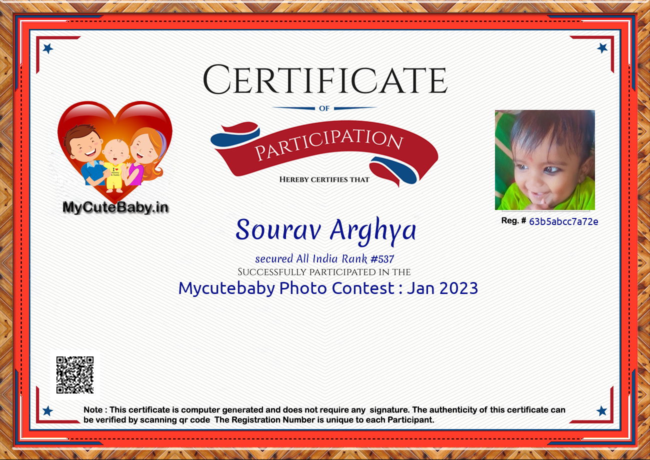 Participation certificate for all the participants whose mycutebaby votes are more than 1000.