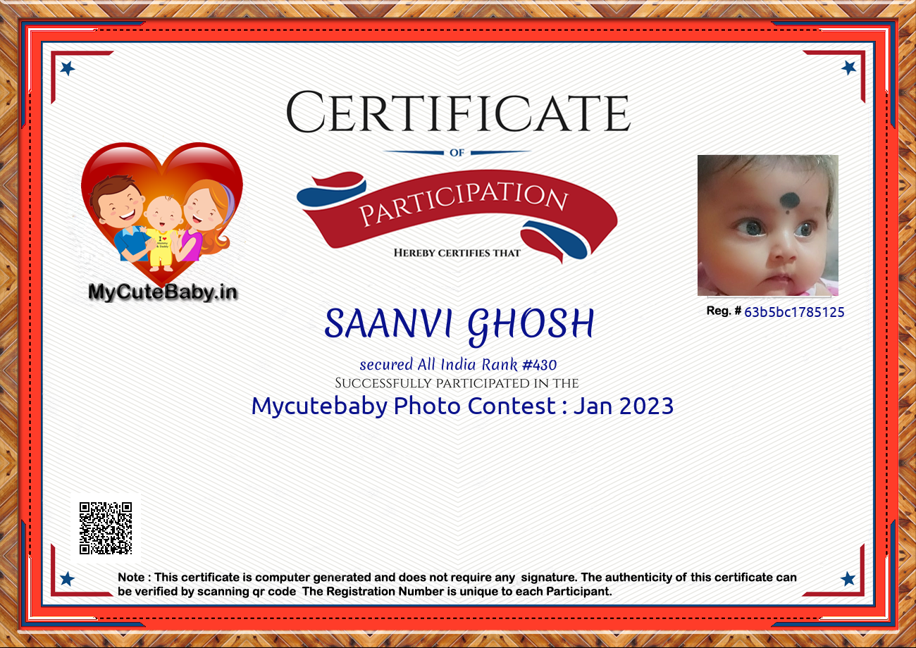 Participation certificate for all the participants whose mycutebaby votes are more than 1000.
