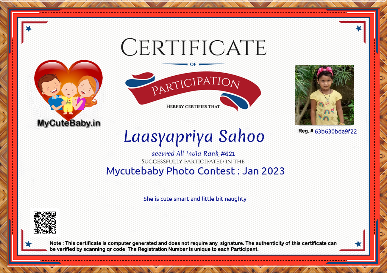 Participation certificate for all the participants whose mycutebaby votes are more than 1000.