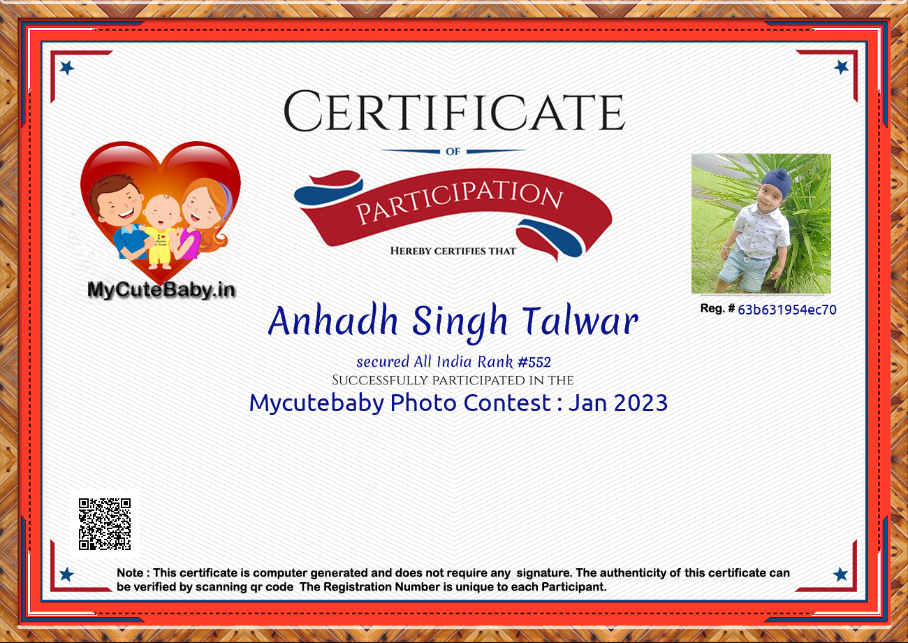 Participation certificate for all the participants whose mycutebaby votes are more than 1000.