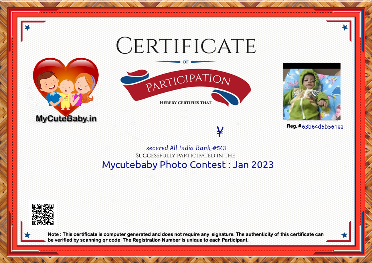 Participation certificate for all the participants whose mycutebaby votes are more than 1000.