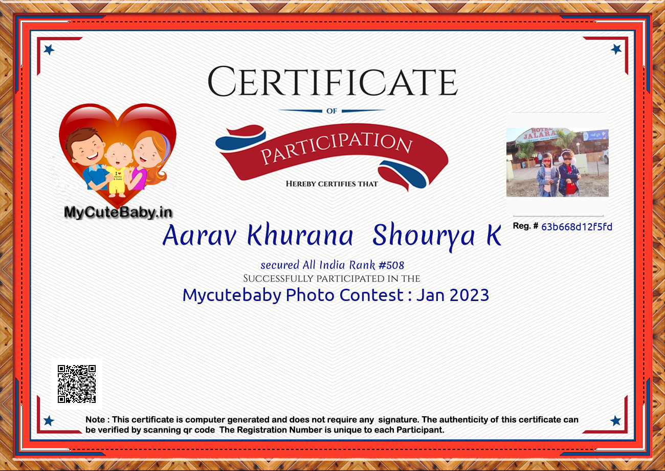 Participation certificate for all the participants whose mycutebaby votes are more than 1000.