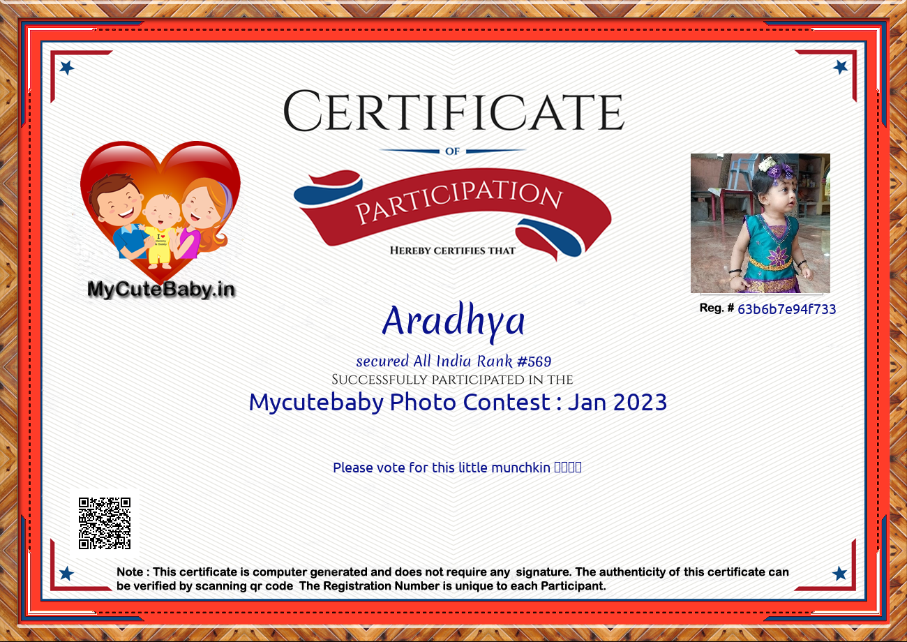 Participation certificate for all the participants whose mycutebaby votes are more than 1000.