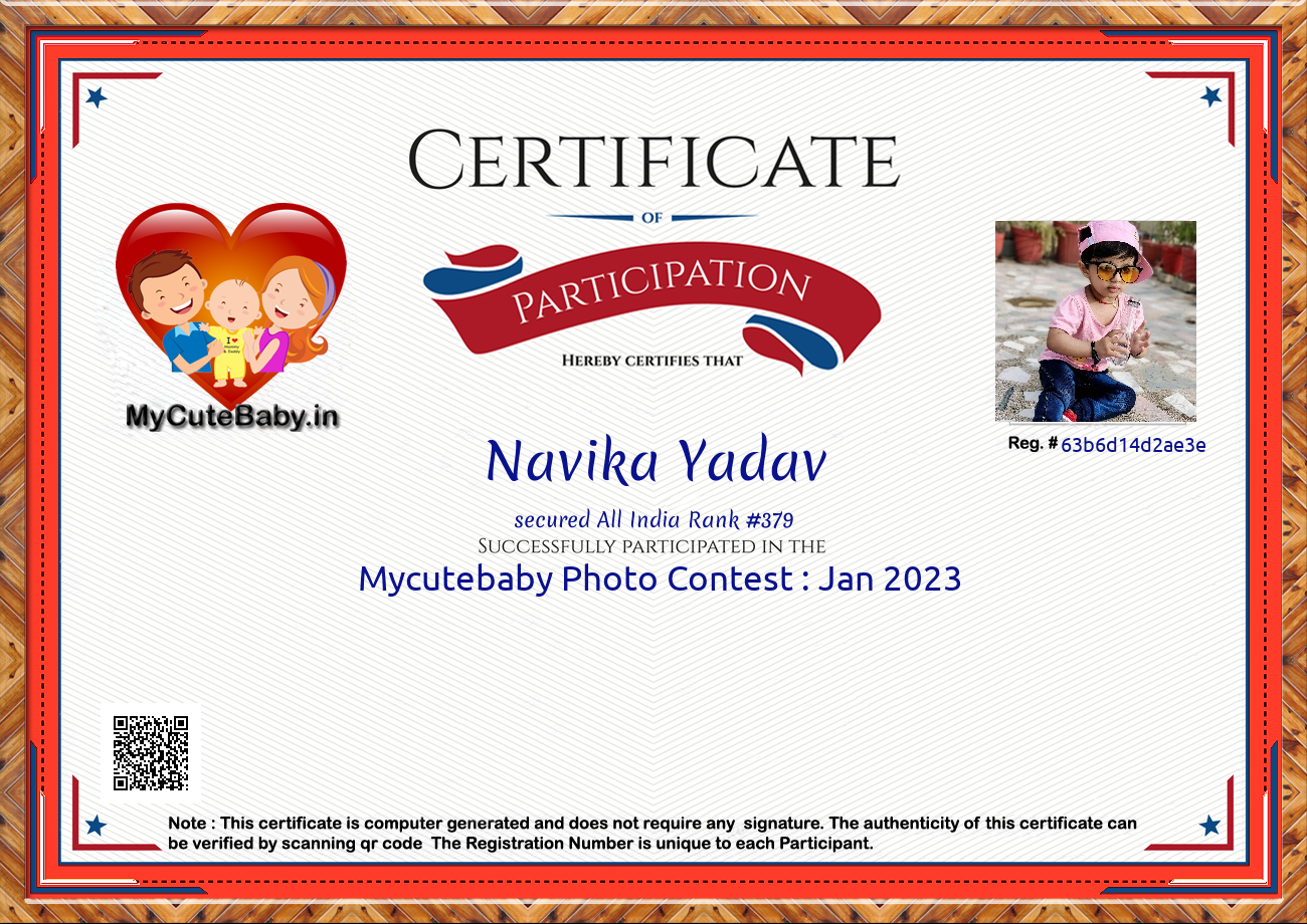 Participation certificate for all the participants whose mycutebaby votes are more than 1000.