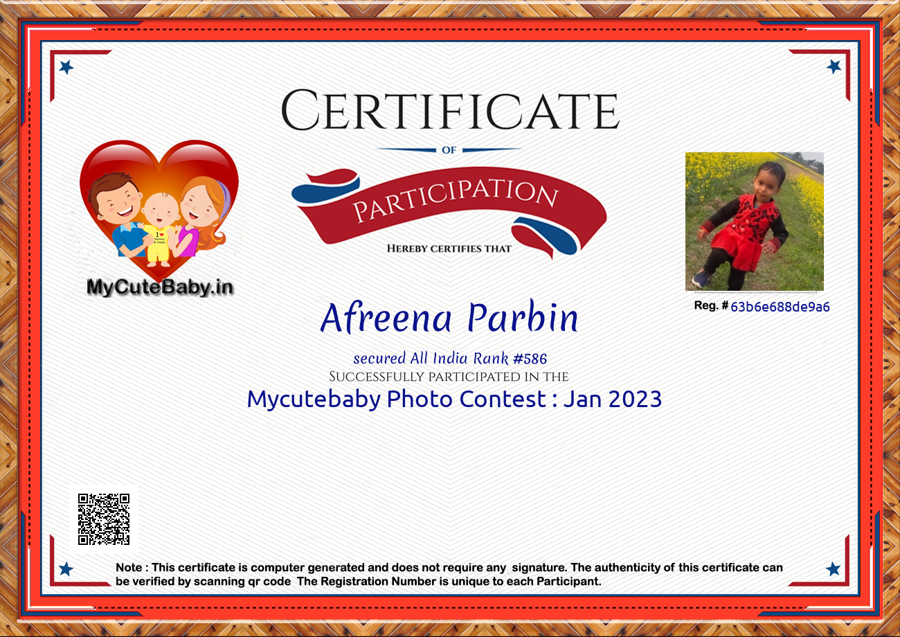 Participation certificate for all the participants whose mycutebaby votes are more than 1000.