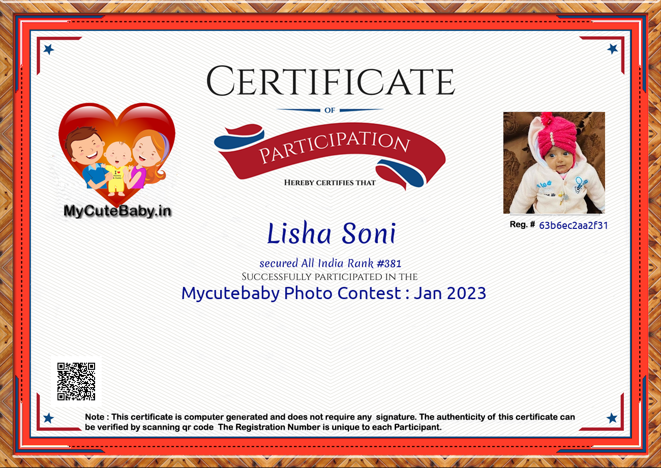 Participation certificate for all the participants whose mycutebaby votes are more than 1000.
