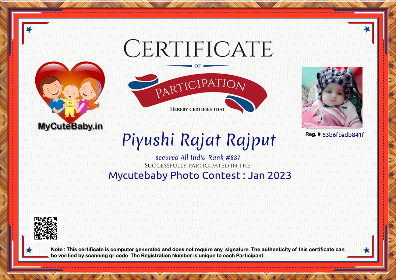 Participation certificate for all the participants whose mycutebaby votes are more than 1000.