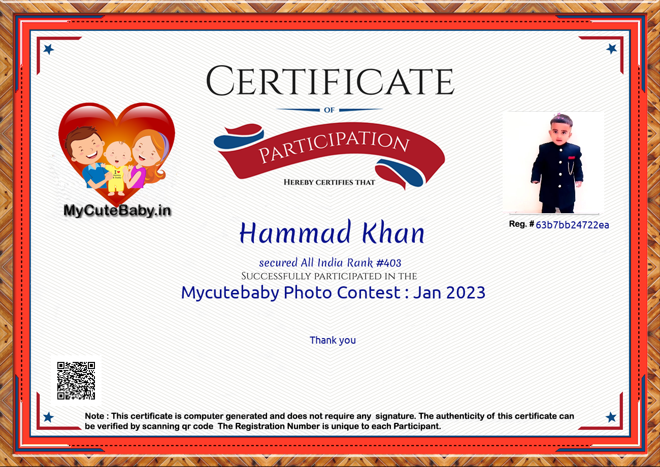 Participation certificate for all the participants whose mycutebaby votes are more than 1000.