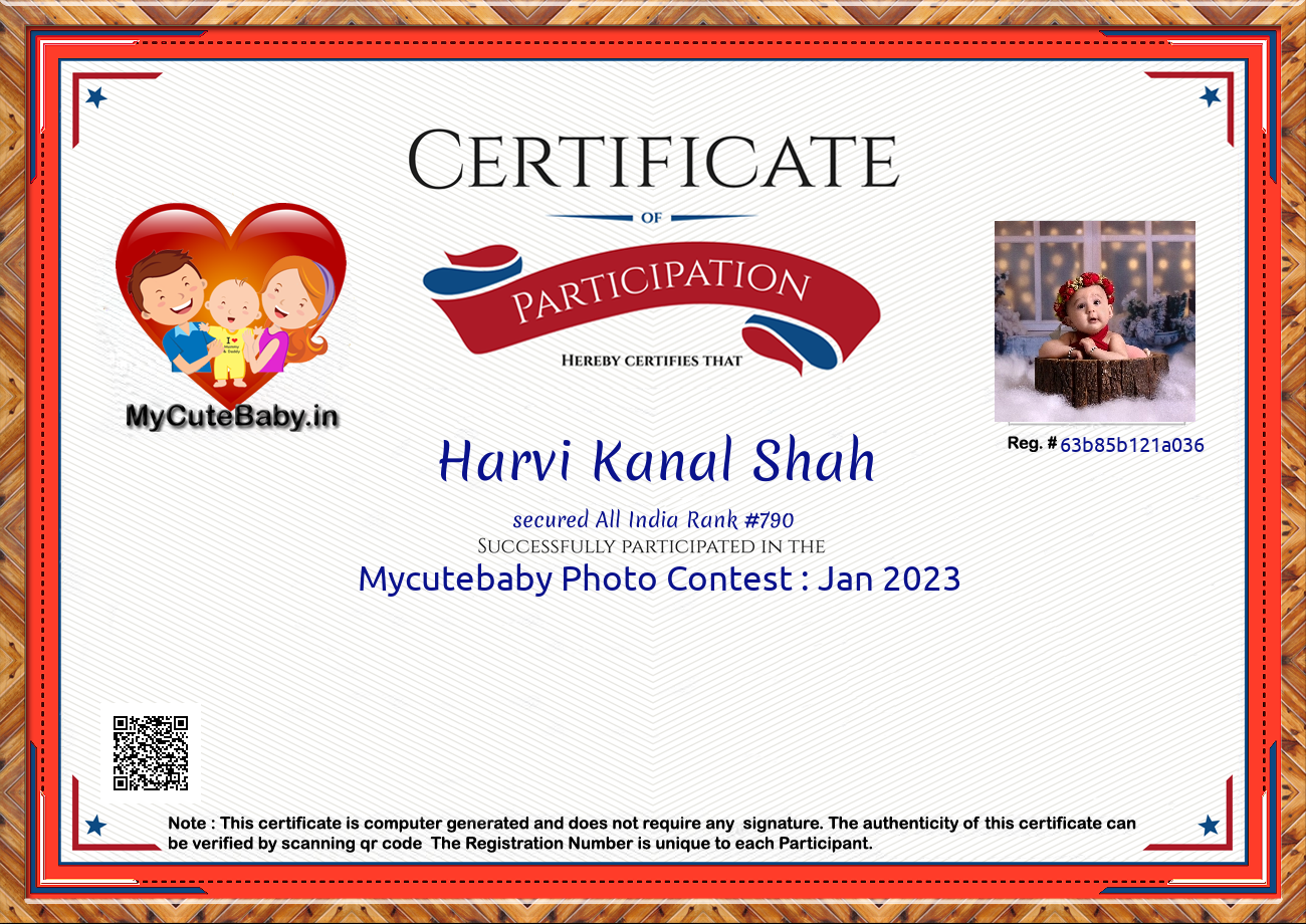 Participation certificate for all the participants whose mycutebaby votes are more than 1000.