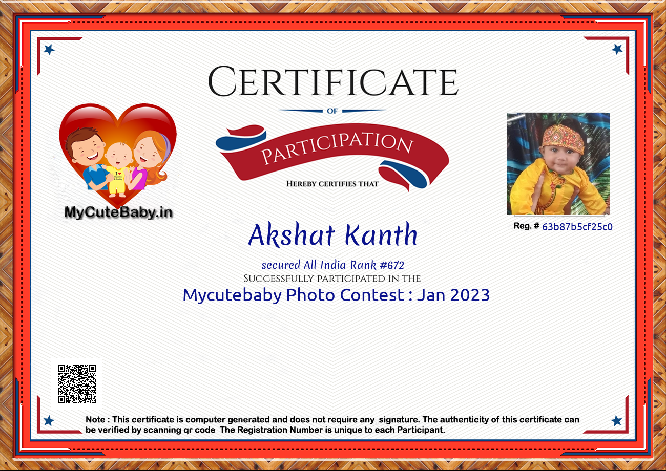 Participation certificate for all the participants whose mycutebaby votes are more than 1000.