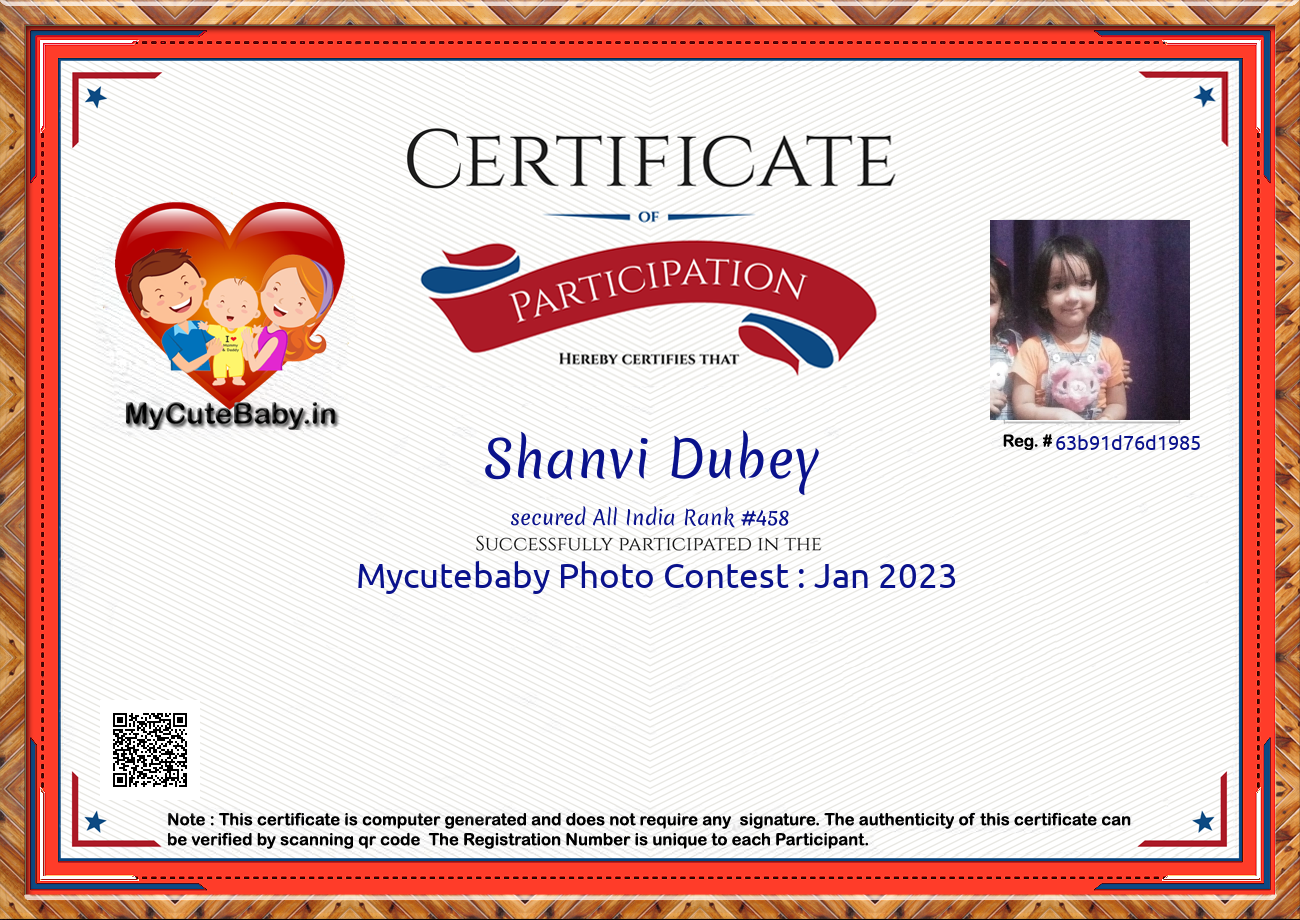 Participation certificate for all the participants whose mycutebaby votes are more than 1000.