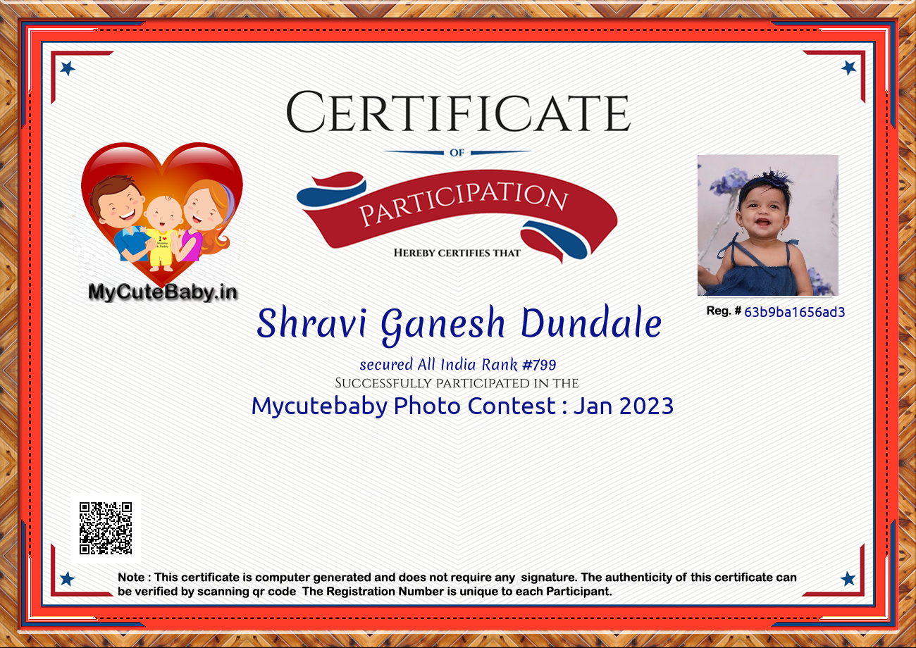 Participation certificate for all the participants whose mycutebaby votes are more than 1000.