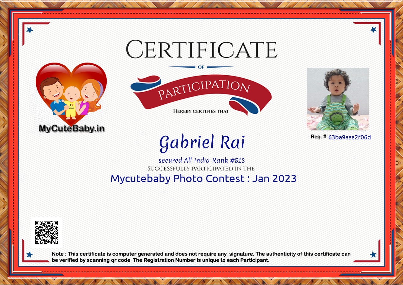 Participation certificate for all the participants whose mycutebaby votes are more than 1000.