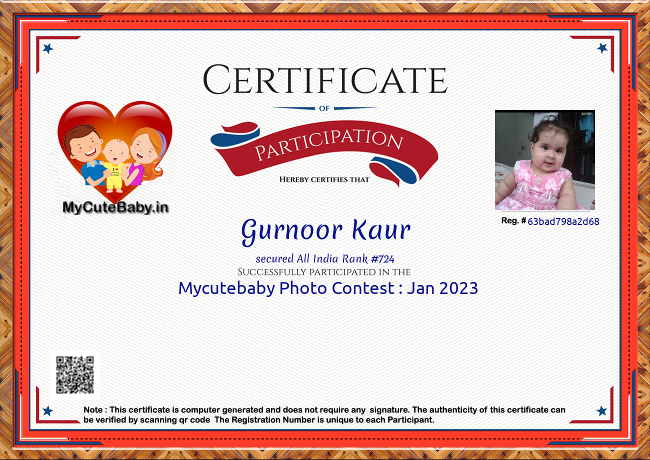 Participation certificate for all the participants whose mycutebaby votes are more than 1000.