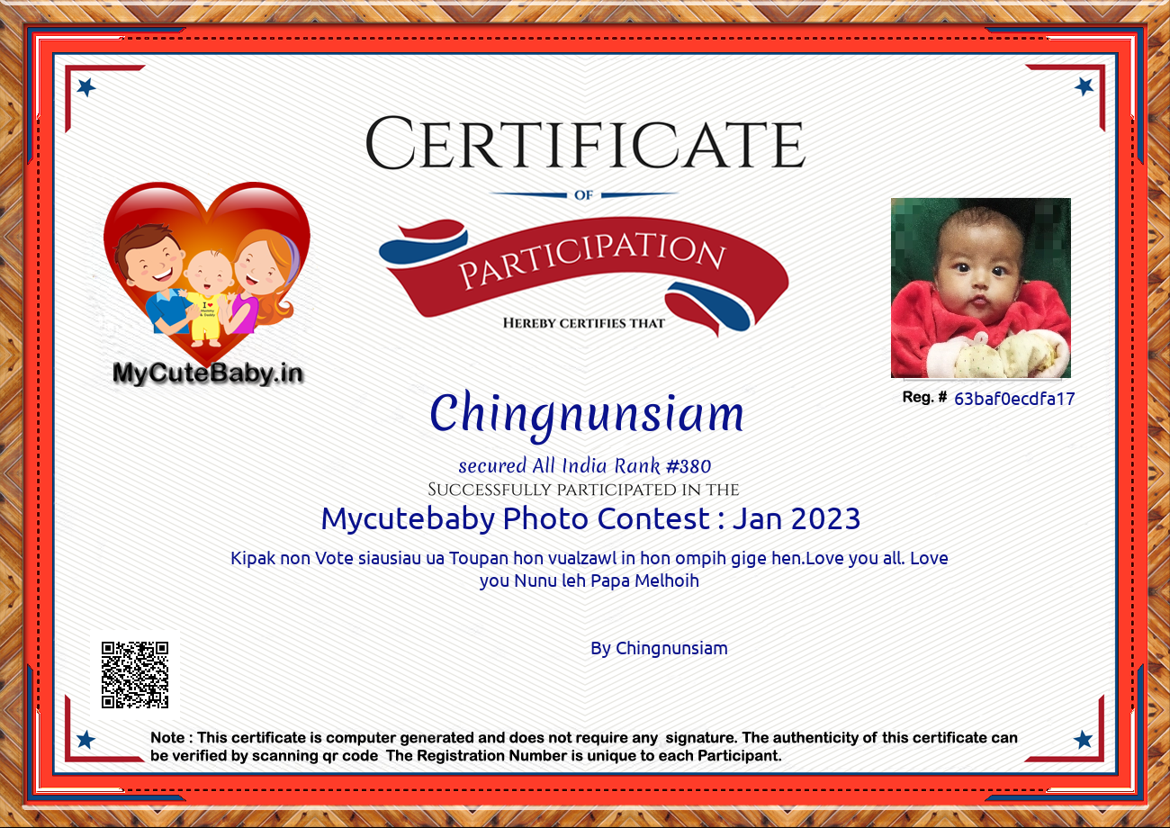 Participation certificate for all the participants whose mycutebaby votes are more than 1000.