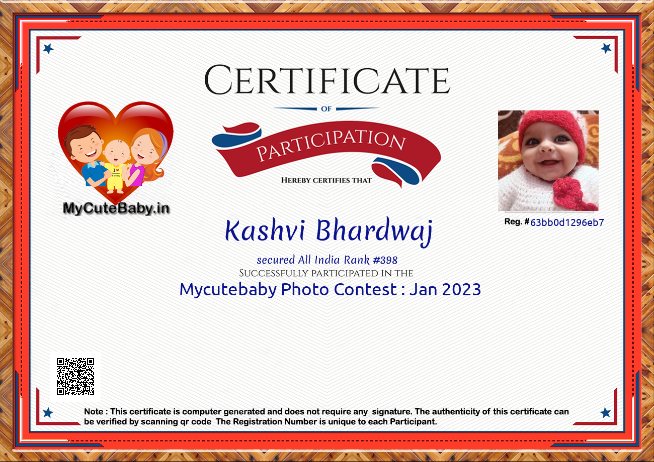 Participation certificate for all the participants whose mycutebaby votes are more than 1000.