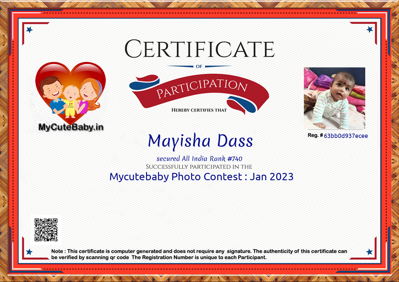 Participation certificate for all the participants whose mycutebaby votes are more than 1000.