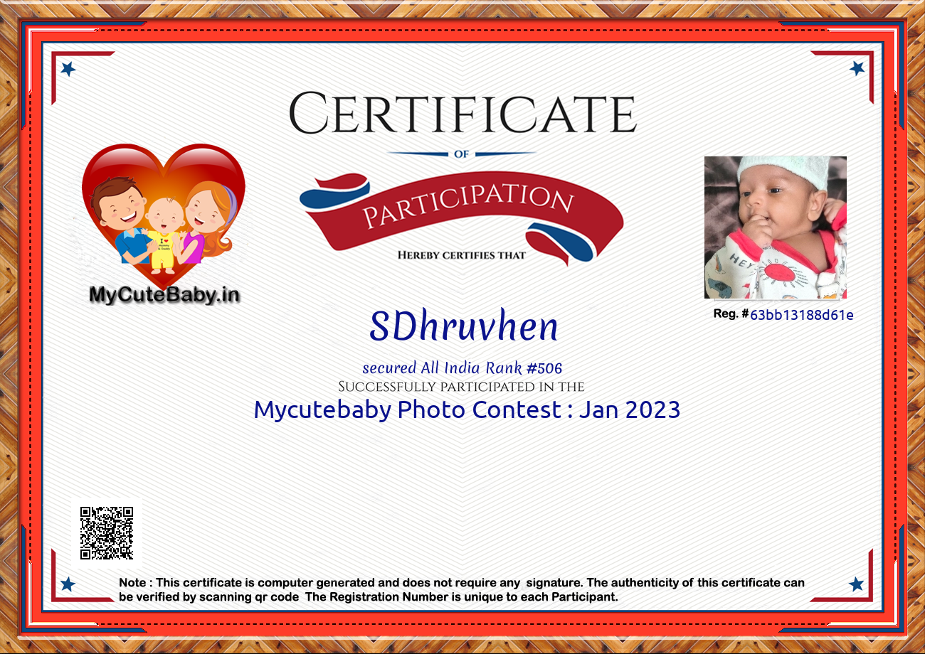 Participation certificate for all the participants whose mycutebaby votes are more than 1000.