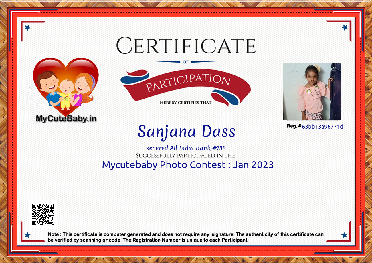 Participation certificate for all the participants whose mycutebaby votes are more than 1000.