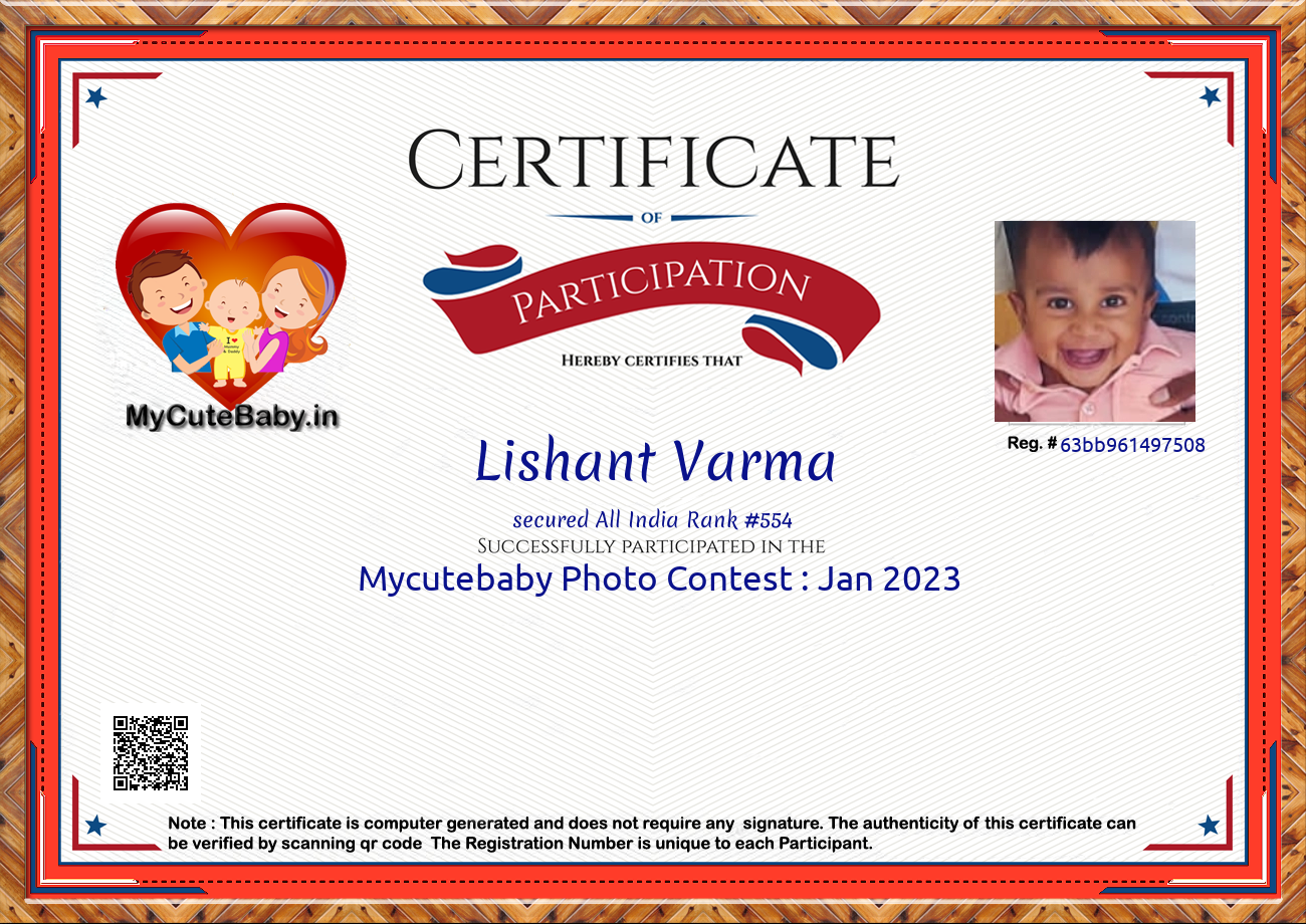 Participation certificate for all the participants whose mycutebaby votes are more than 1000.