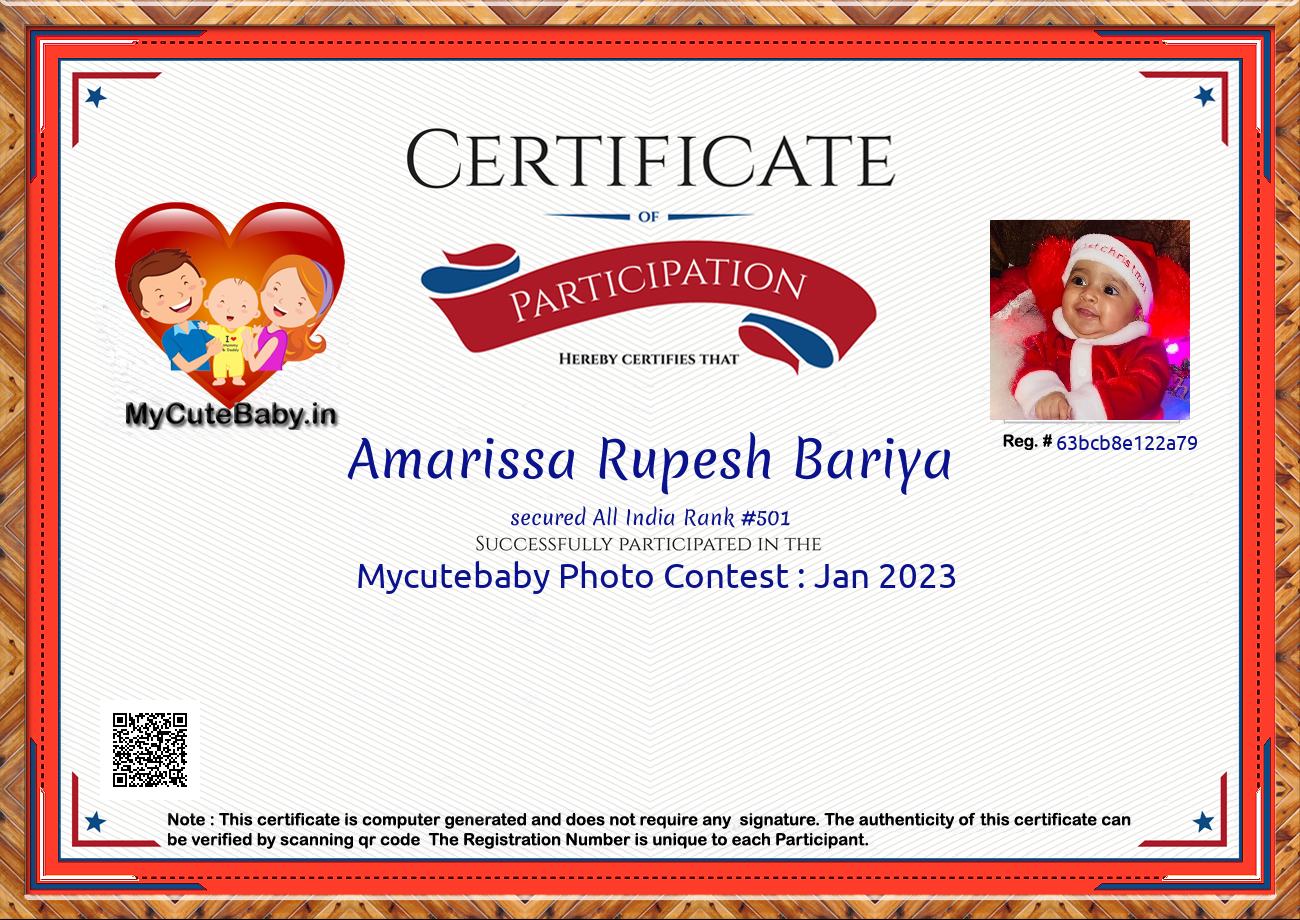 Participation certificate for all the participants whose mycutebaby votes are more than 1000.