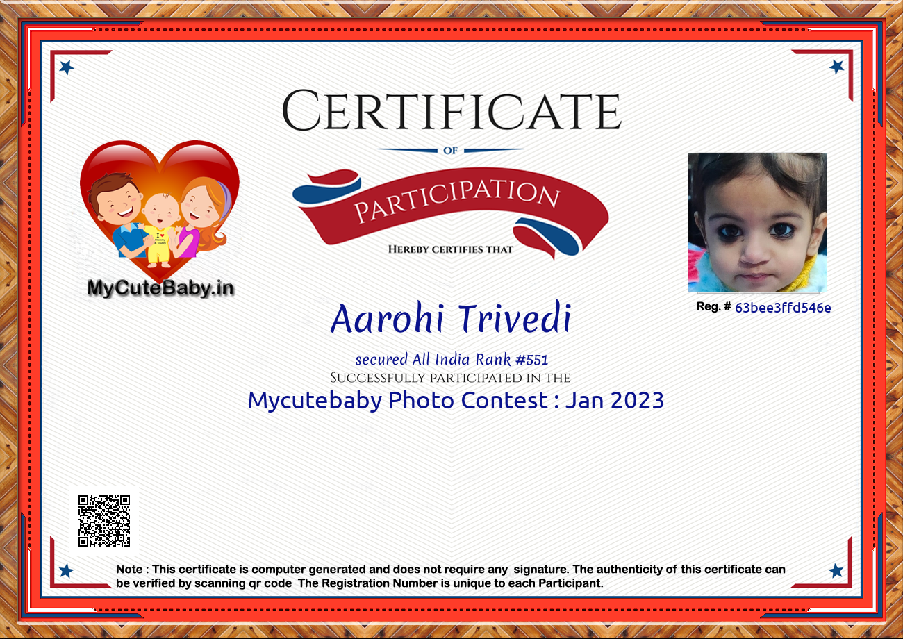 Participation certificate for all the participants whose mycutebaby votes are more than 1000.
