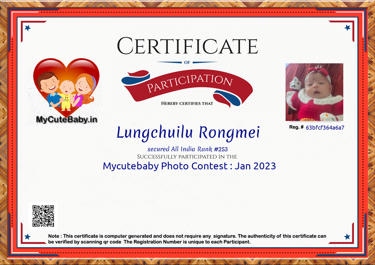 Participation certificate for all the participants whose mycutebaby votes are more than 1000.