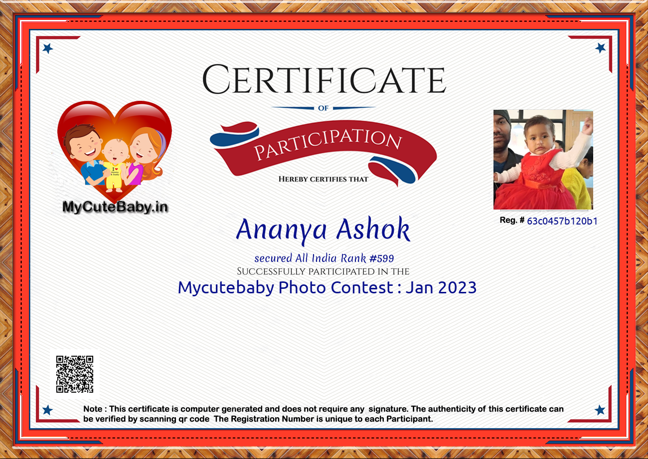 Participation certificate for all the participants whose mycutebaby votes are more than 1000.