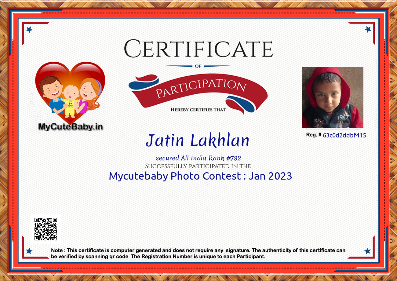 Participation certificate for all the participants whose mycutebaby votes are more than 1000.