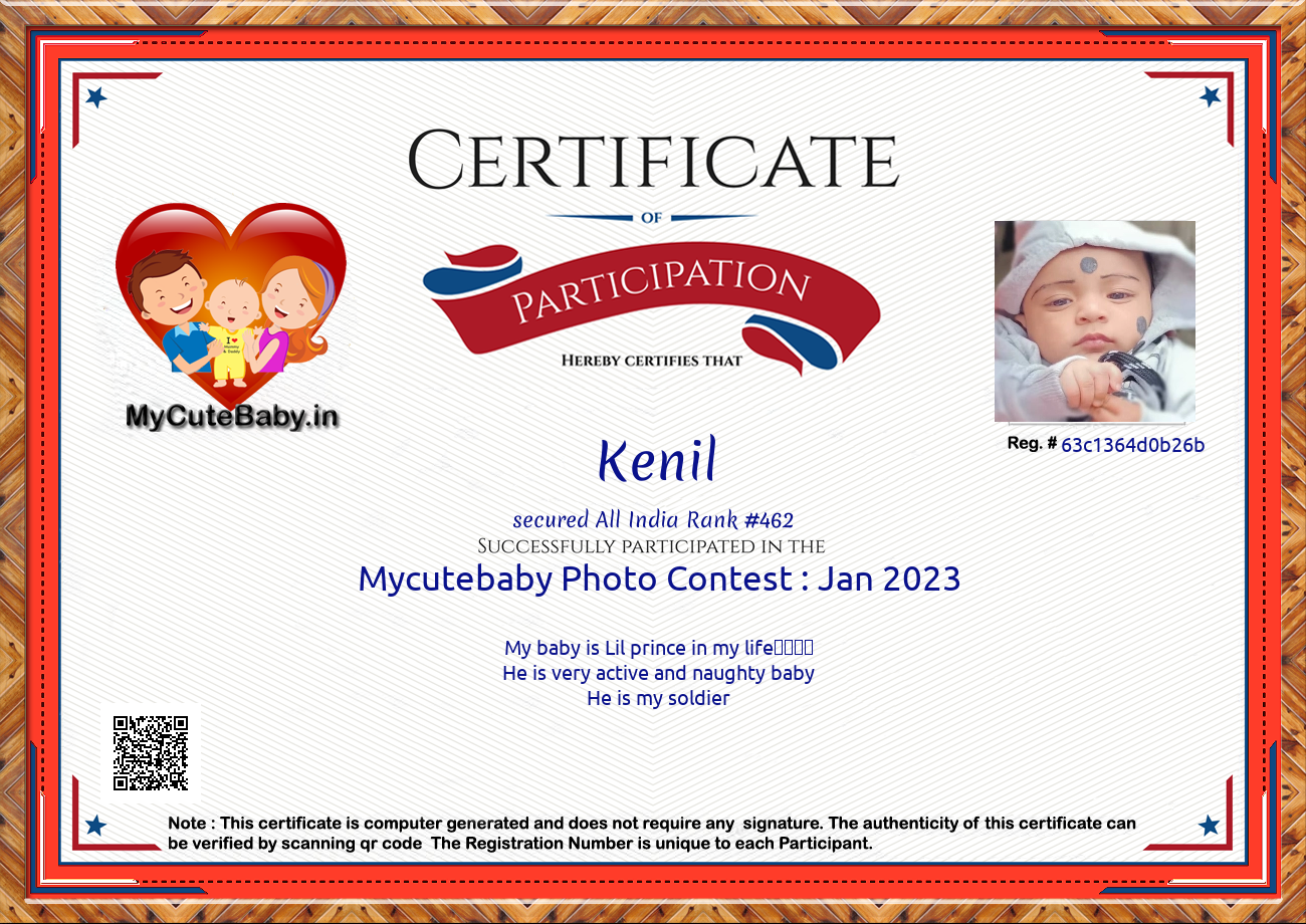 Participation certificate for all the participants whose mycutebaby votes are more than 1000.