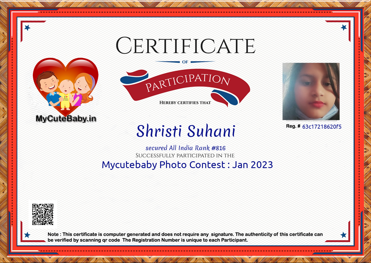 Participation certificate for all the participants whose mycutebaby votes are more than 1000.
