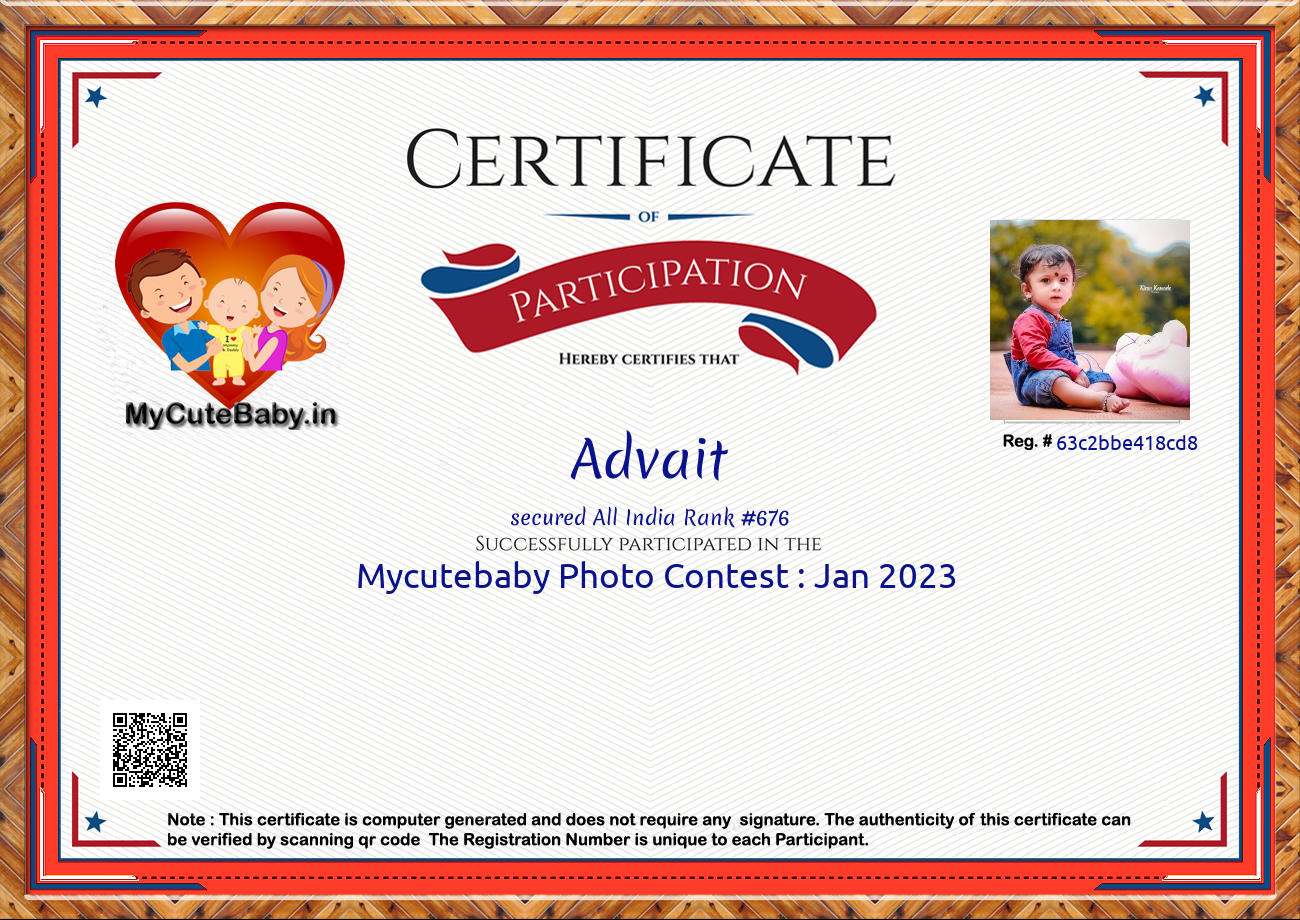 Participation certificate for all the participants whose mycutebaby votes are more than 1000.