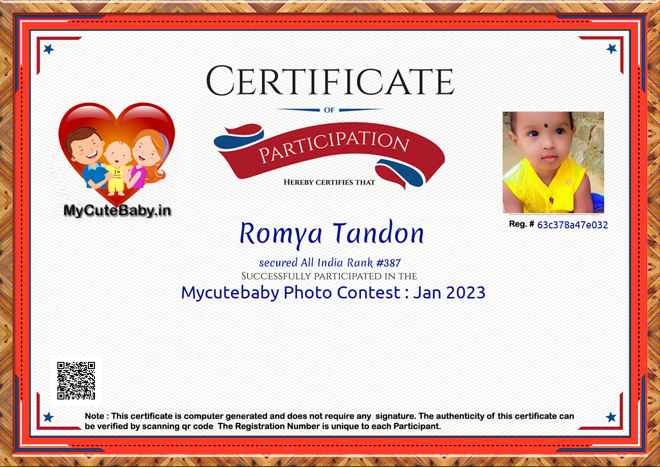 Participation certificate for all the participants whose mycutebaby votes are more than 1000.