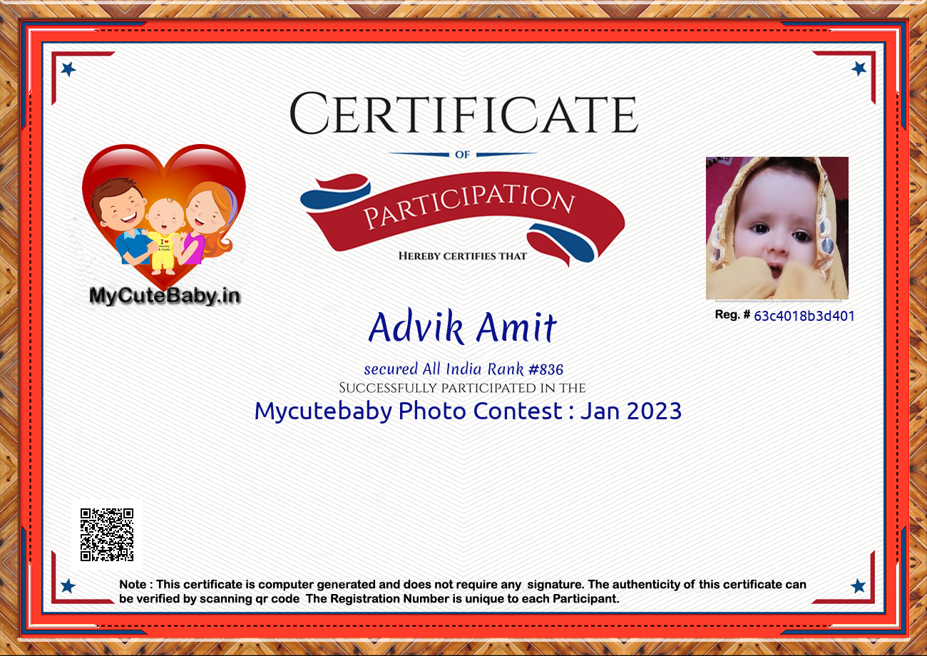 Participation certificate for all the participants whose mycutebaby votes are more than 1000.