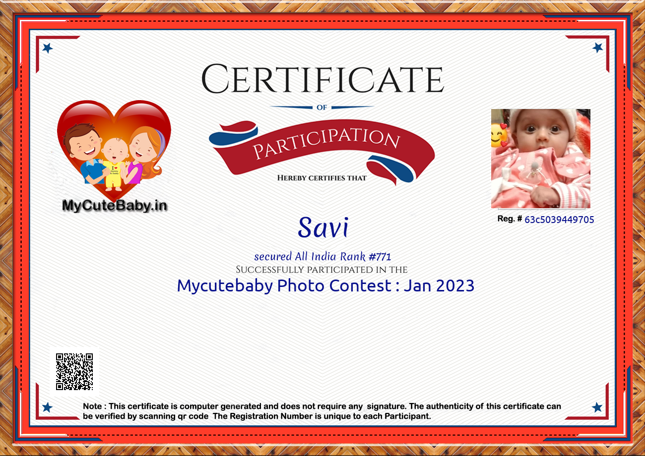 Participation certificate for all the participants whose mycutebaby votes are more than 1000.