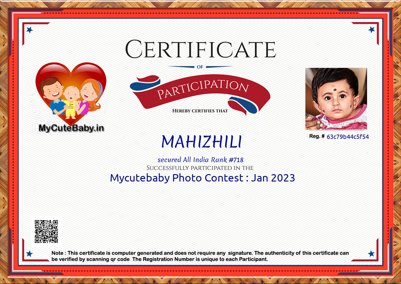 Participation certificate for all the participants whose mycutebaby votes are more than 1000.