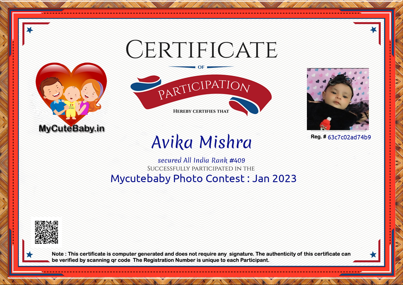 Participation certificate for all the participants whose mycutebaby votes are more than 1000.