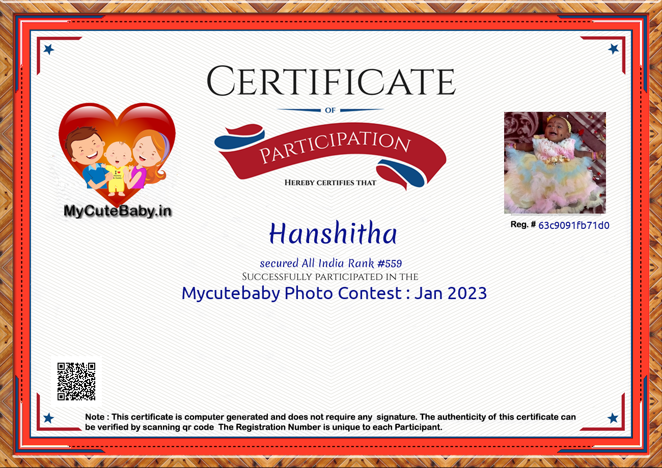 Participation certificate for all the participants whose mycutebaby votes are more than 1000.