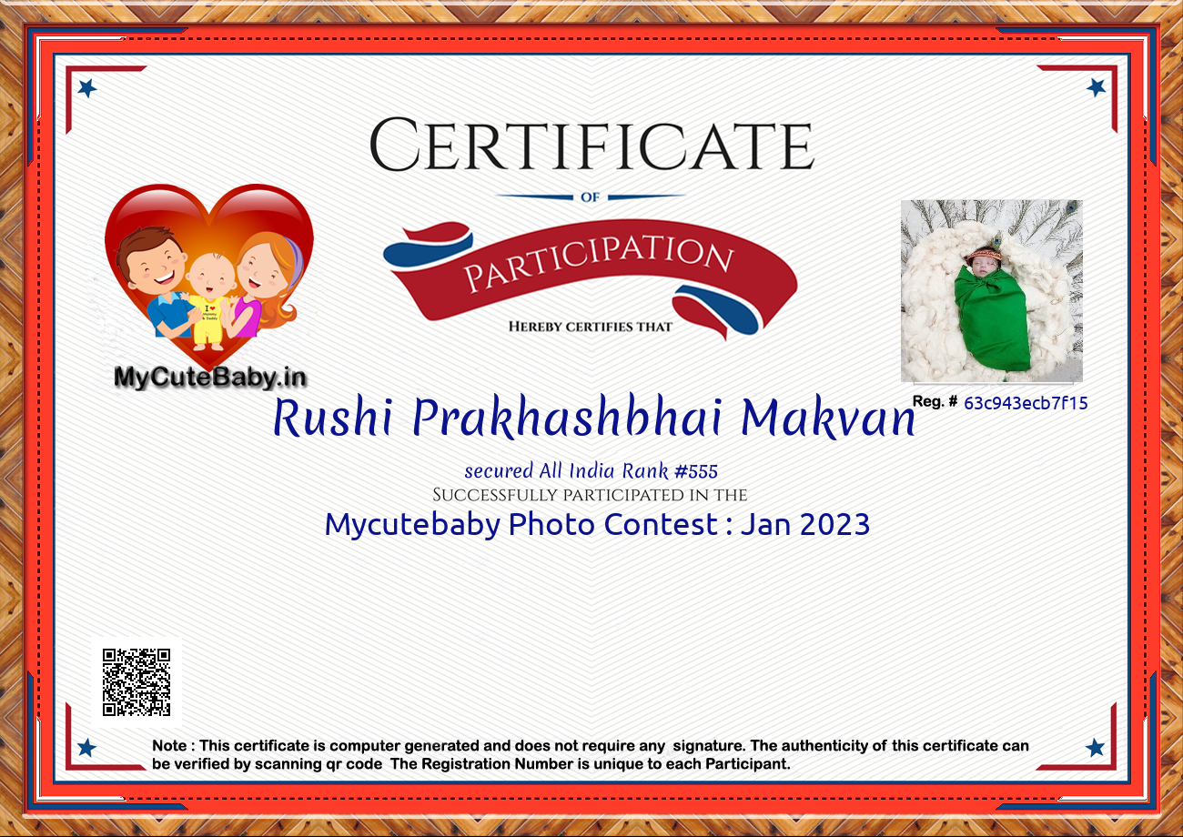 Participation certificate for all the participants whose mycutebaby votes are more than 1000.
